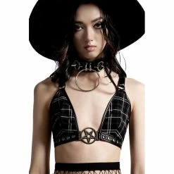 Killstar Halter-Top – Crimson Daze Ash Tartan